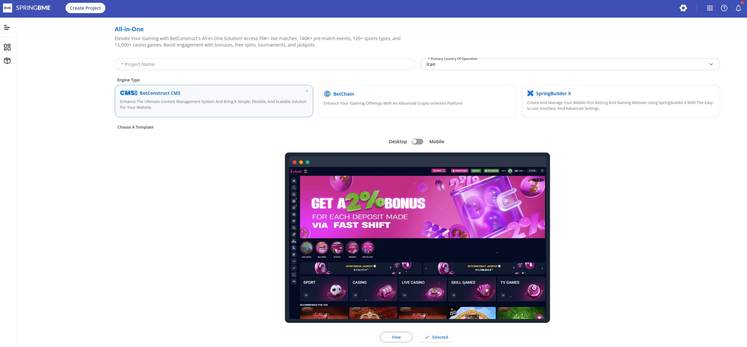 Leaked data from BetConstruct’s SpringBME (Business Management Environment) and its flagship SpringBuilder X tool—the suite used by clients to build and launch new betting sites—show that the company has fully integrated Iran into its “Turnkey” solutions.