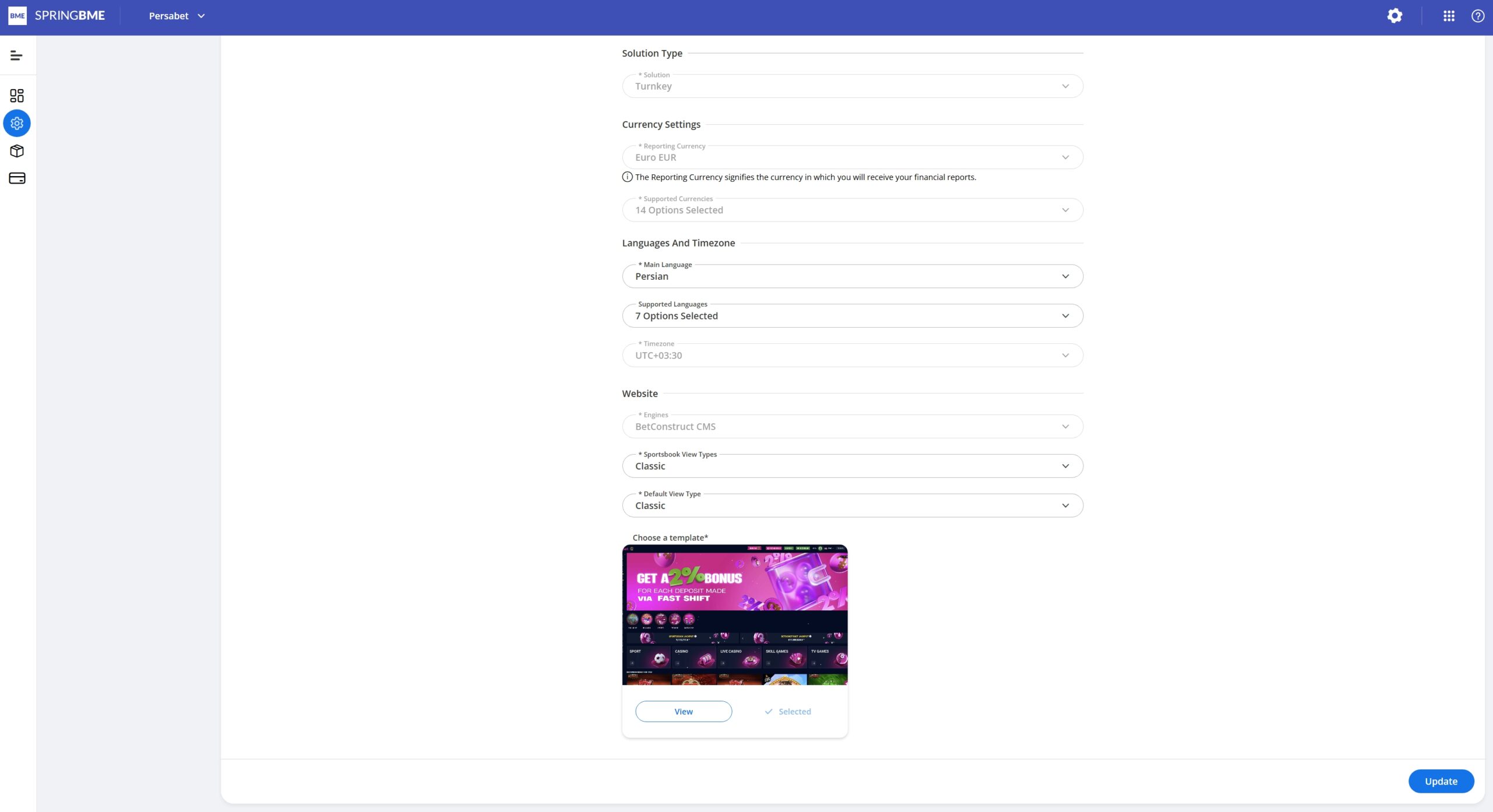 Currency & Engine Type: The platform’s BetChain and CMS Pro engines are automatically optimized to handle the regional specifics of the Iranian market, including “Shadow” payment configurations necessary for sanctioned financial zones.
